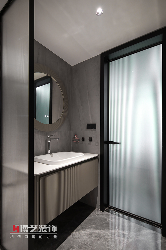 家人之間,我們需要親密無間,同時我們也要為彼此創造各自獨自的生活。主人房和父母房做了單獨套房,各配備了獨立衛生間。作為家里的公衛,我們做了干濕分離,也修飾了原本狹長的過道,使得整個過道空間看上去更為寬敞。