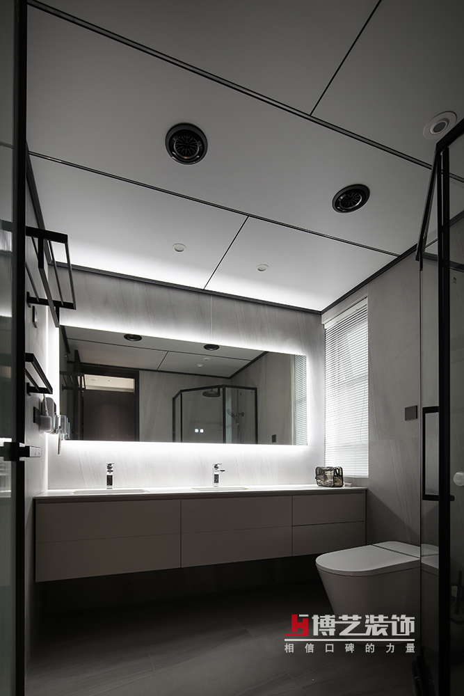 2. 同時,我們保留了三個衛生間,主衛做了雙臺盆,公衛做了干濕分離,滿足各個時段家人之間的需求。