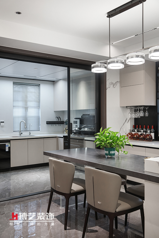 開放式的島臺作為廚房和餐廳之間的過度,也保留了西廚的使用功能。