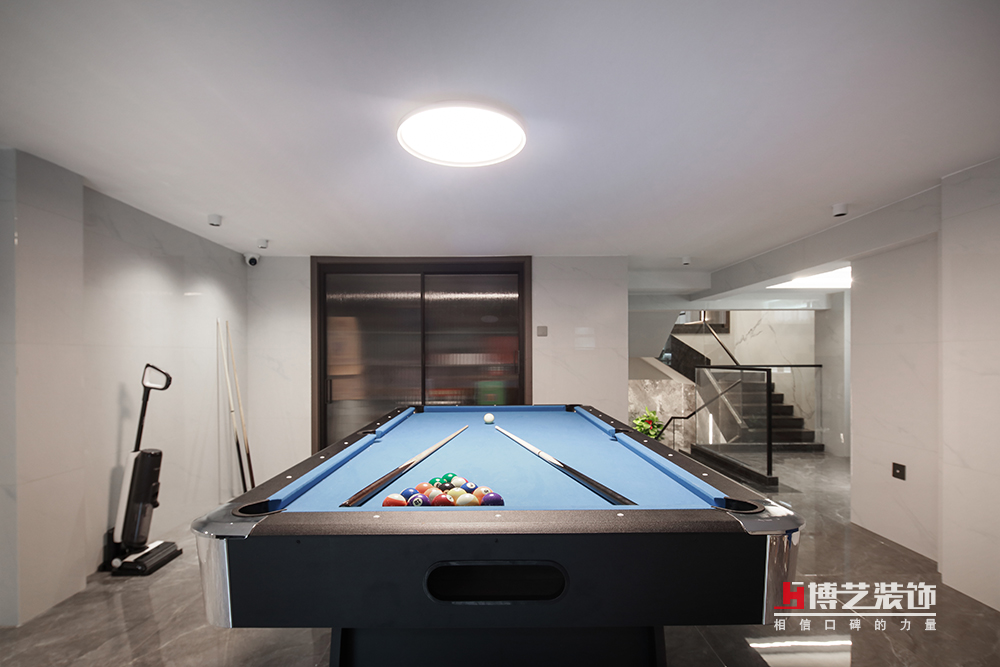 地下室主要規劃成了一家人的休閑空間,影視廳,臺球室,水吧臺,所有的休閑娛樂設施應有盡有,滿足了全家人的休閑時光。
