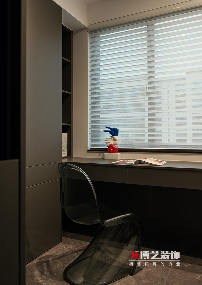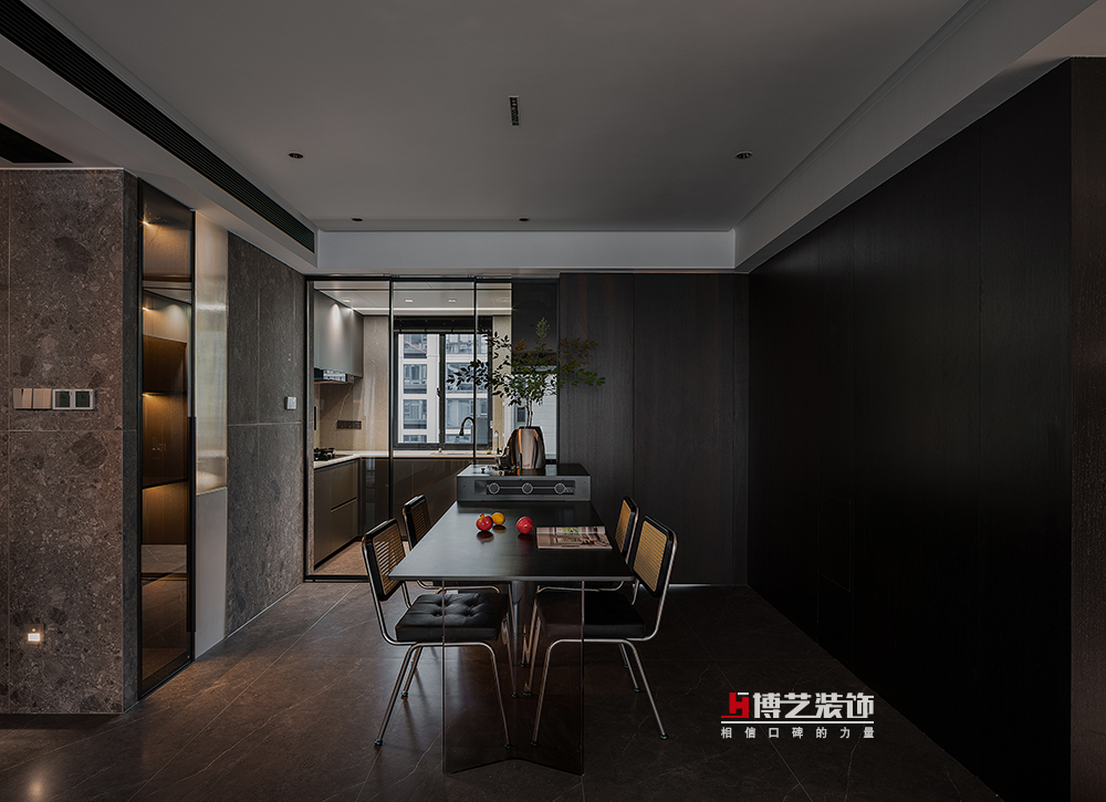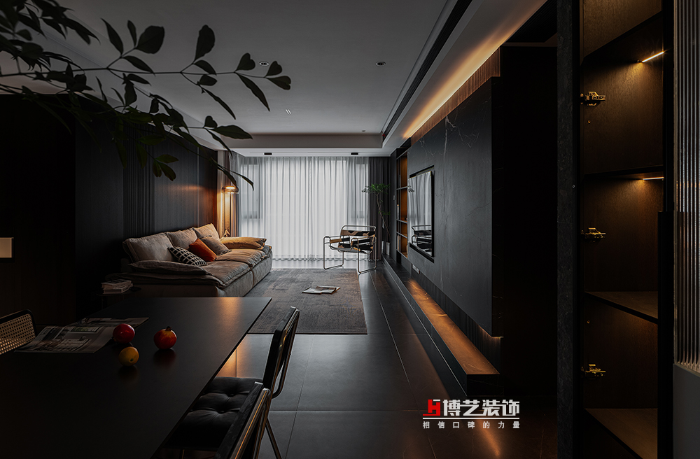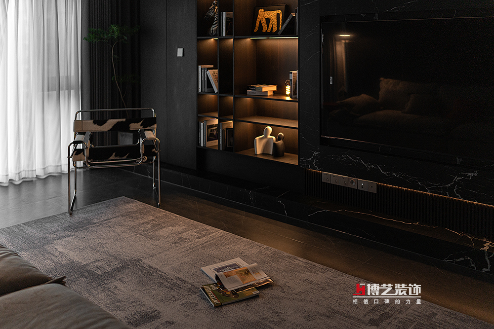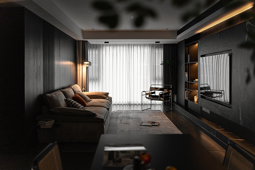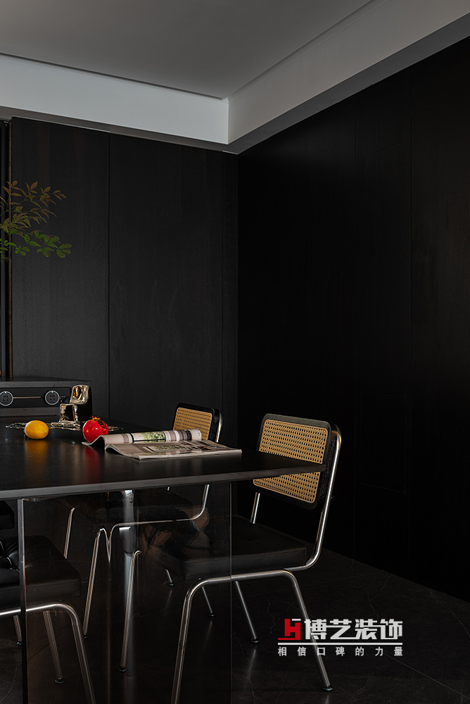 一枝蓬勃的綠色,打破黑色帶來的沉悶給空間帶來生機(jī),不同的質(zhì)感不同的色彩共同營(yíng)造出空間的活力。
