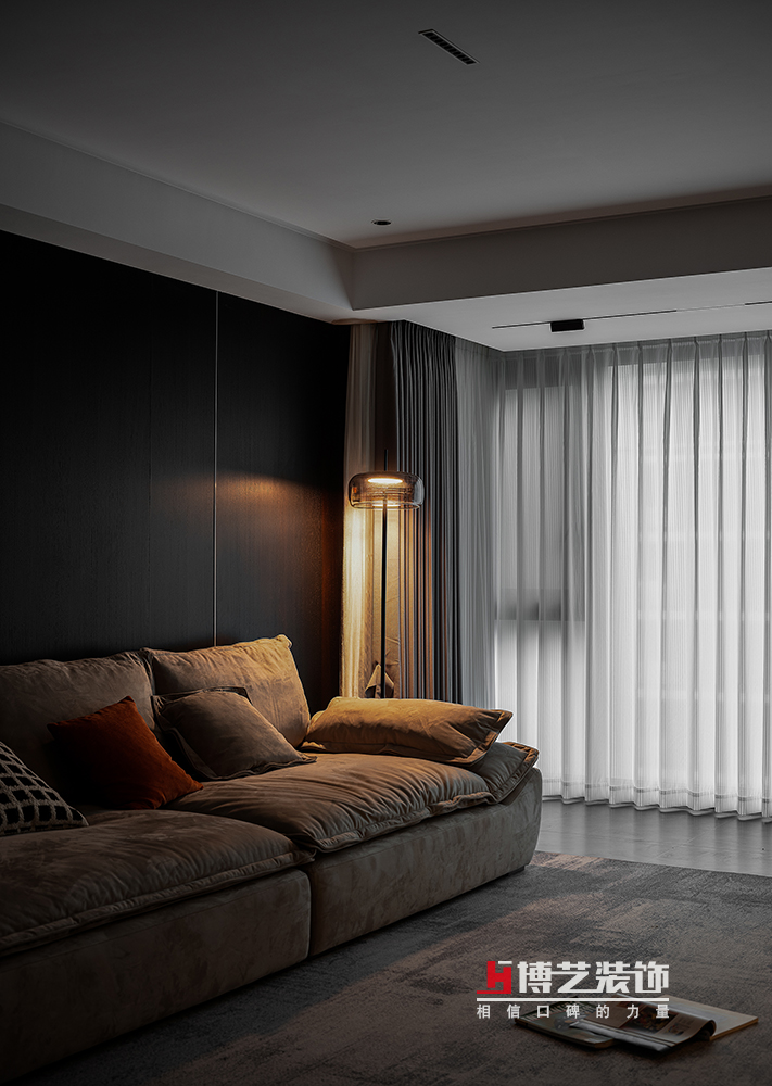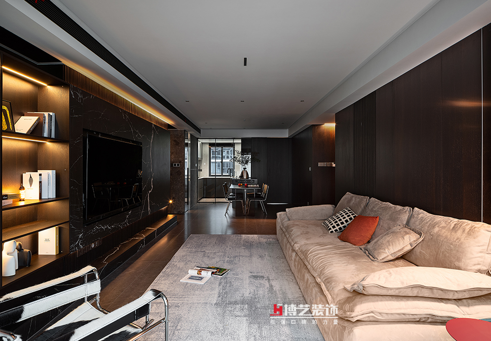 整個(gè)空間的燈光設(shè)計(jì)更是點(diǎn)睛之筆,不管是沙發(fā)旁的落地?zé)簦斆娴能壍罒簦尘暗木€性燈,亦或是點(diǎn)綴燈,每盞燈光都賦予空間不曾有過的氛圍。