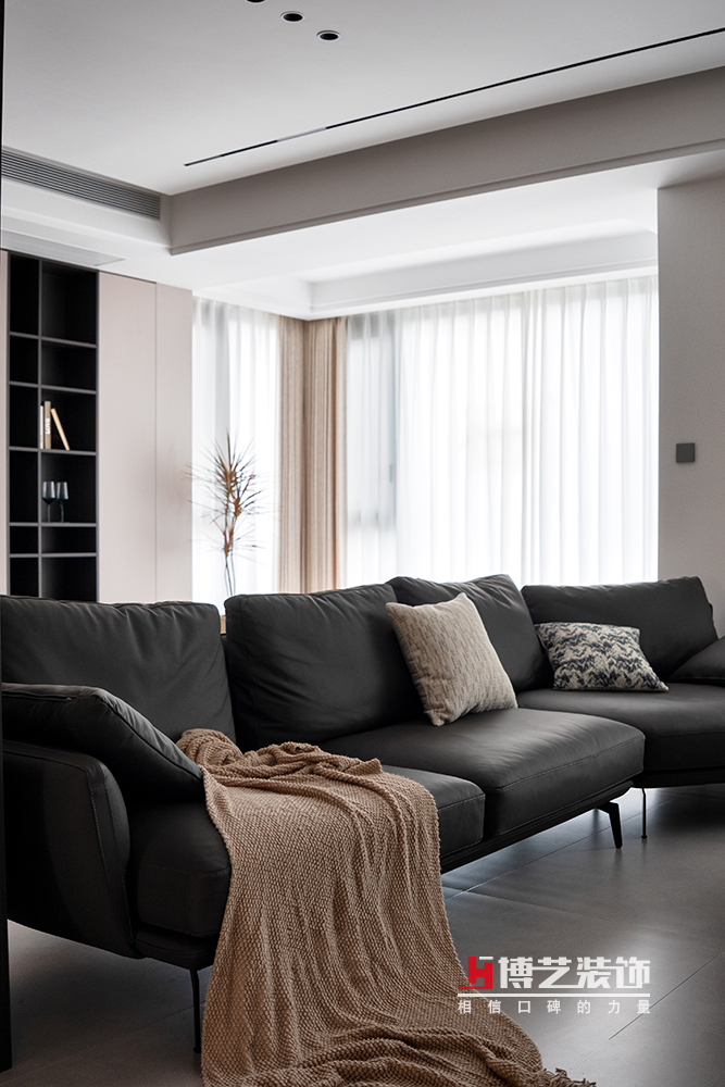 黑白灰的主色調讓整個空間看上去干凈清爽,將陽臺打通之后客廳空間一下子就通透了起來。充沛的光照與黑白灰的空間開始光與影的追逐,在寂靜中注入活力,搭配上綠植,原本黑白的空間馬上就精致生動了起來。