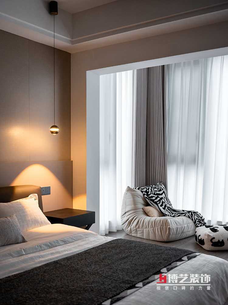 簡潔的線條勾勒出純凈的輪廓,溫暖的燈光營造出平和的氛圍,在喧囂中尋找靜謐之所,度過舒適的夜晚。