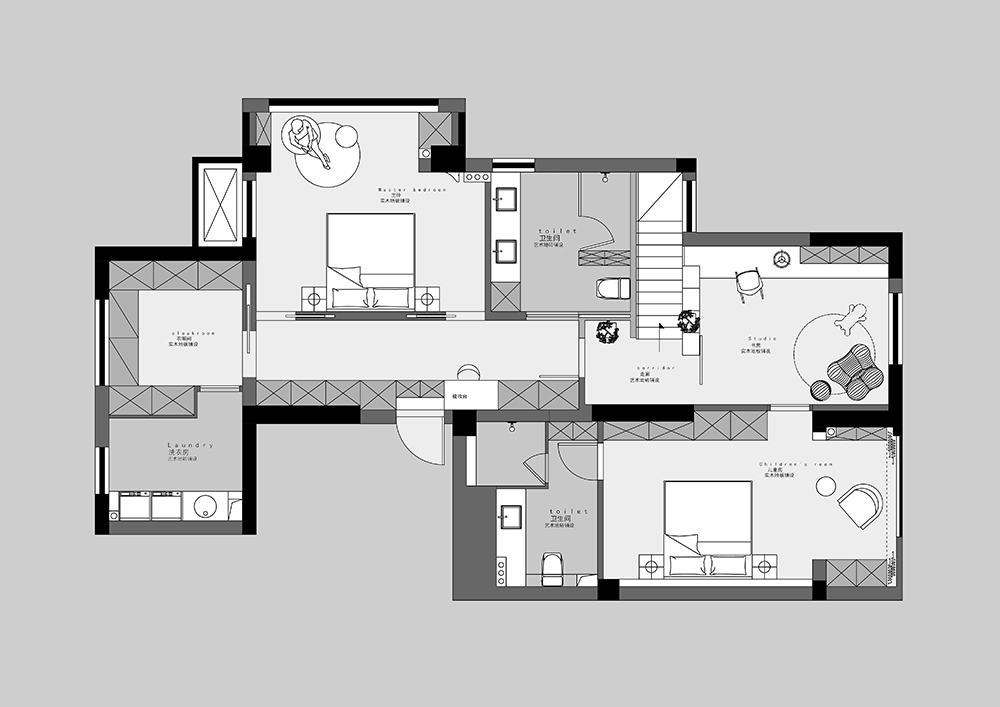 黑白色調(diào)的兒童房中,設(shè)計(jì),不僅是對(duì)空間的塑造,更是對(duì)居住者個(gè)性的詮釋。以極簡(jiǎn)的色彩對(duì)比和流暢的線條勾勒一個(gè)充滿故事感和想象力的居住環(huán)境。