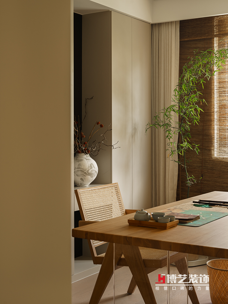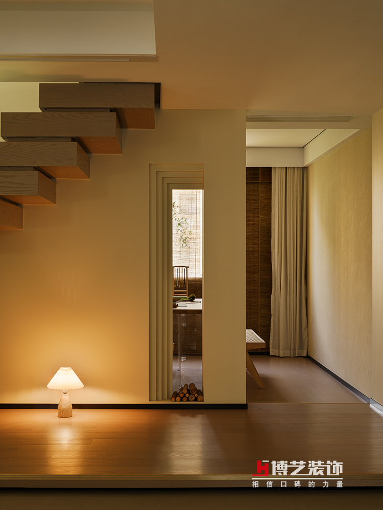 通過(guò)自然的材料,簡(jiǎn)約的布局和溫暖的照明,營(yíng)造出一個(gè)適合靜思和品茗的空間。