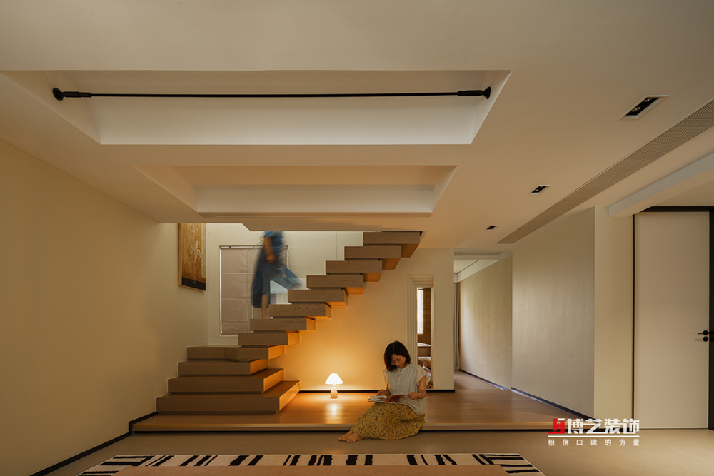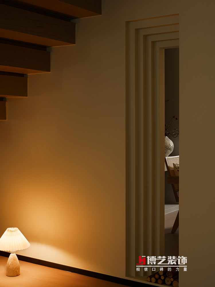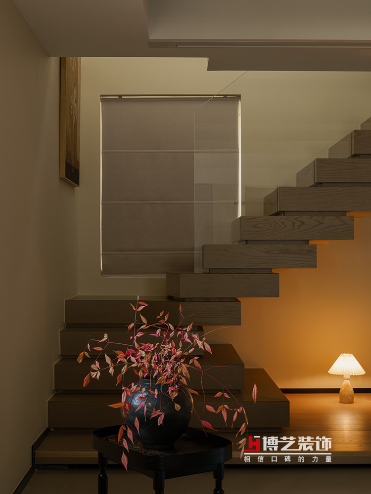 樓梯被賦予了新的意義,ta如同一條靜謐的河流,緩緩流淌在上下層空間之間,采用了最簡(jiǎn)潔的線條,去除一切多余的裝飾,讓樓梯的結(jié)構(gòu)本身成為一道風(fēng)景。