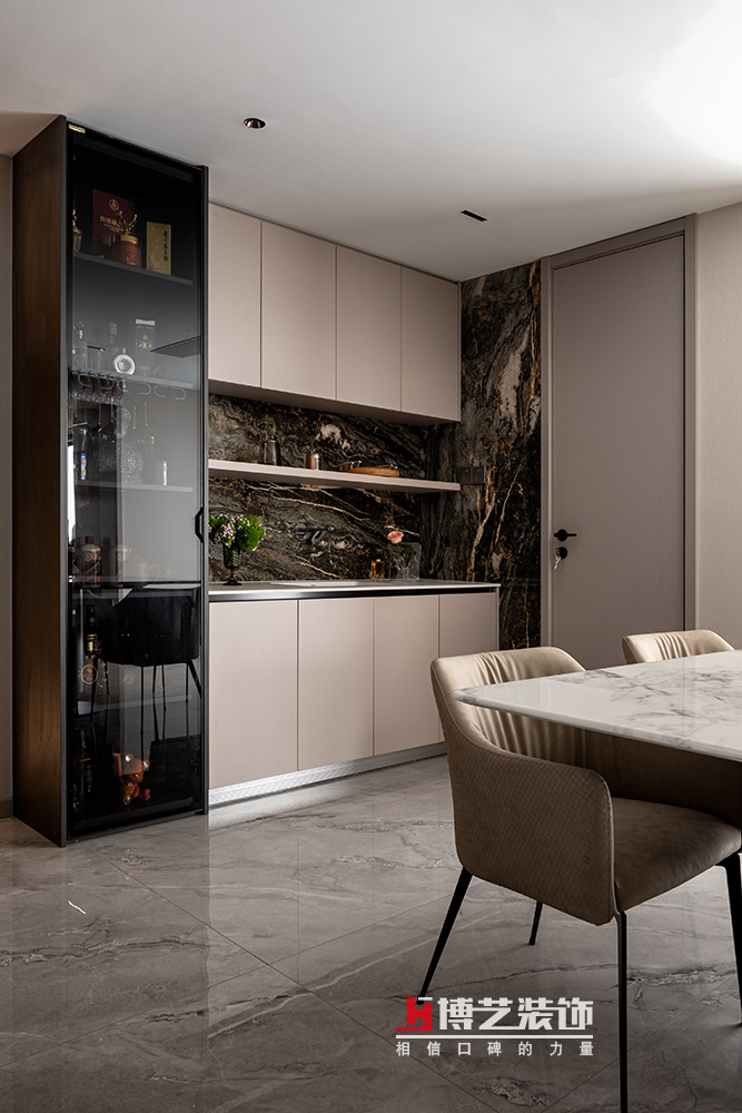 3、外衛做空間調整,把臺盆外置,使餐廳更寬敞同時又規劃出休閑區,生活與理想都要兼備;
