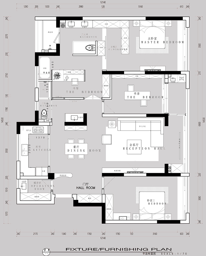 這是一個(gè)160㎡的大平層。整個(gè)戶型只保留了兩個(gè)房間,其余的都盡可能做成互動(dòng)的開放空間。兩個(gè)洄游動(dòng)線的設(shè)計(jì)制造了整個(gè)公區(qū)連貫、開放的生活軌跡,從而形成一家人烹飪、聚餐、會(huì)客、休閑等豐富的生活場景。