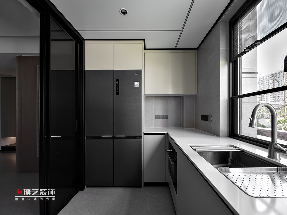 在每個(gè)家庭中,廚房不僅僅是烹飪食物的地方,是一個(gè)家的溫暖大后方,更是一家人情感交流和生活樂趣的源泉。四聯(lián)動(dòng)的移門最大限度地敞開了廚房,讓烹飪者在忙碌的同時(shí),也能與家人朋友進(jìn)行互動(dòng)。人間煙火氣,最撫凡人心,平凡的一日三餐讓家人更緊密地聯(lián)系在一起。