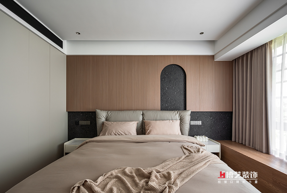 主臥空間以大套房的形式呈現(xiàn),集合了書房、衛(wèi)生間、臥室、衣帽間,這一方自由的天地充分保證了主人的私密空間和舒適性。早晨醒來,推窗即覽四季美景,傍晚歸家,關(guān)窗共享星辰爛漫,讓日常生活如畫卷般徐徐展開。