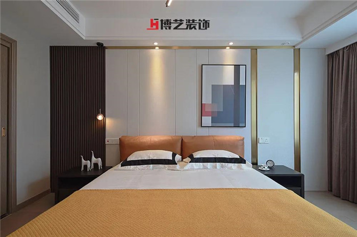 主臥以套房的形式精心打造了睡眠區,獨立衛生間,辦公區,衣帽間,既保證了主人房的私密感,又體現了主人對高品質生活的需求。原木色的穿插讓空間多了一份柔和的氣息,設計師通過選用材質,紋理,色彩,讓空間之間進行對話……