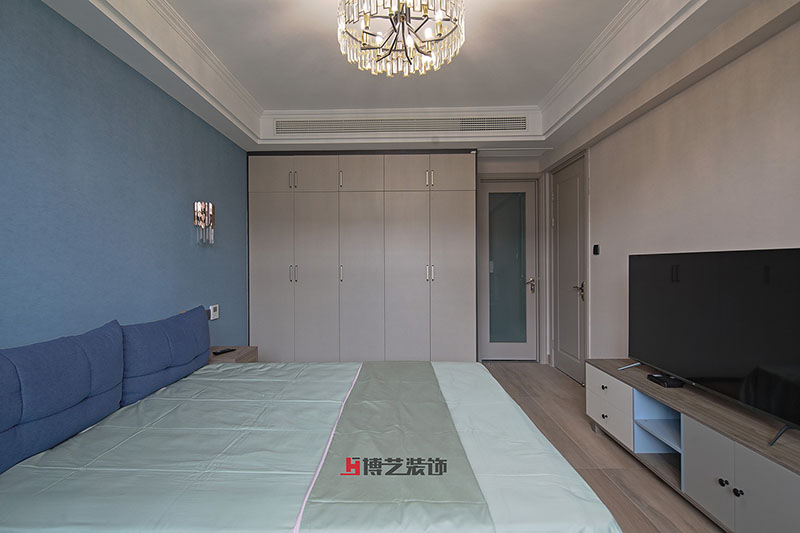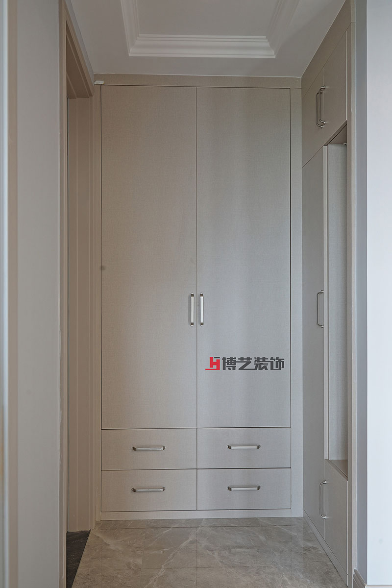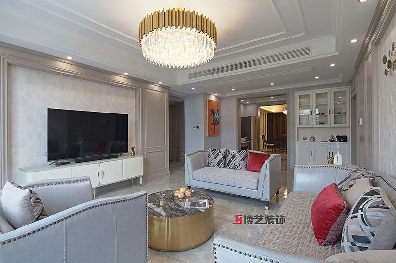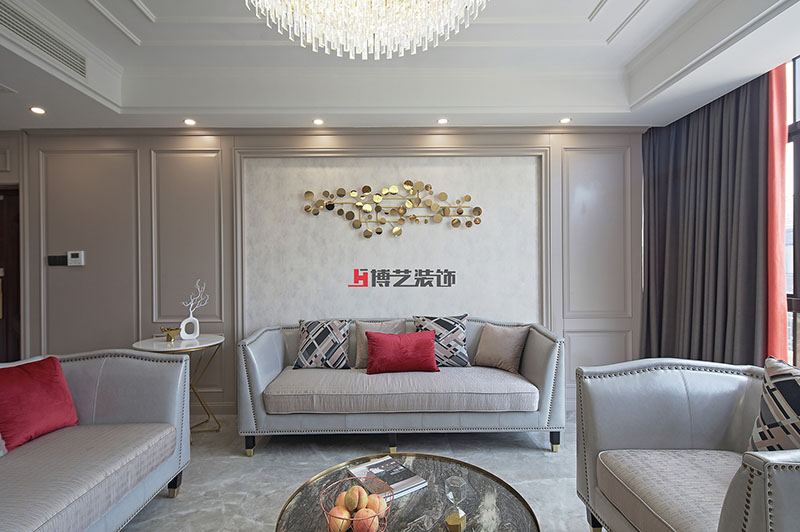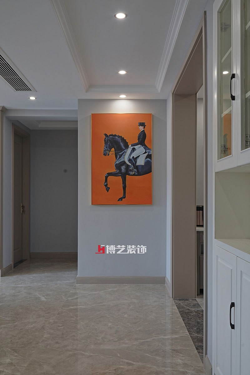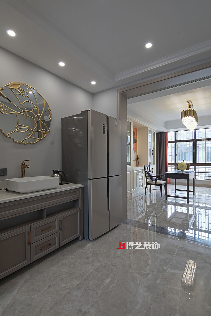 在空間規劃上因為是自建房所以整體都比較合理,空間也比較充足,而廚房的獨立存在,使得樓層的生活用水顯得比較不方便。于是我們在動線上規劃一個水吧的位置,滿足日常生活所需;在色彩上,我們選用目前比較流行的“中性”奶咖色,營造出一個雅致又極度舒緩的空間,再點綴以濃烈的紅色,橘色,仿佛夜空中閃亮的星,那么美好,那么耀眼。