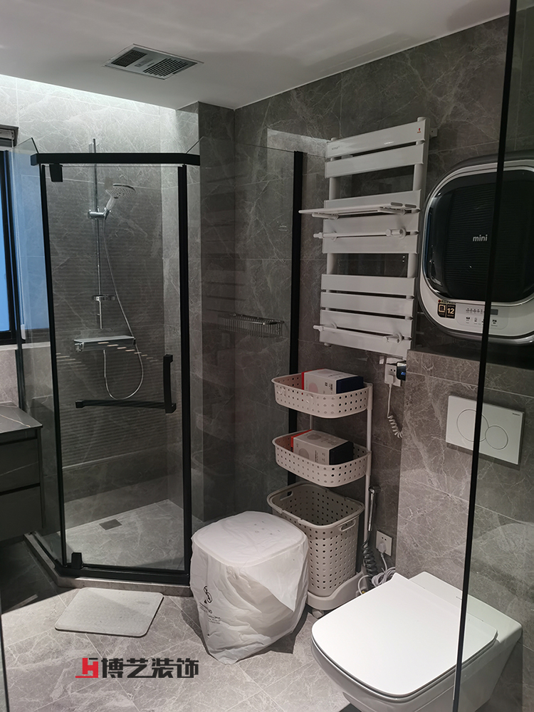 黑白灰的主衛空間,低調的奢華,用玻璃隔斷增加采光,更添時尚與性感。