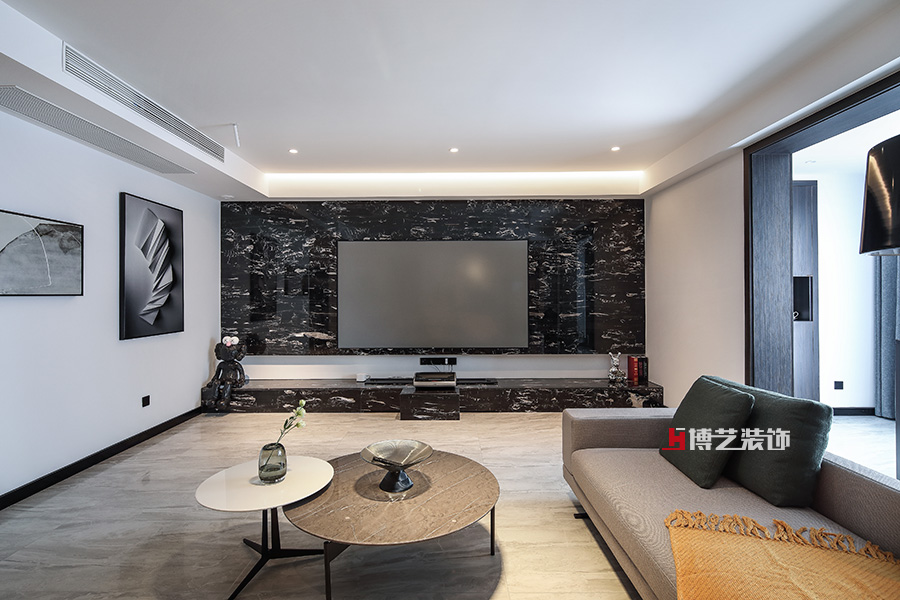 通過光線的暈染,讓黑色不顯沉悶,讓軟裝更加舒適,黑色與米色平衡了環境中的色彩,增加質感。