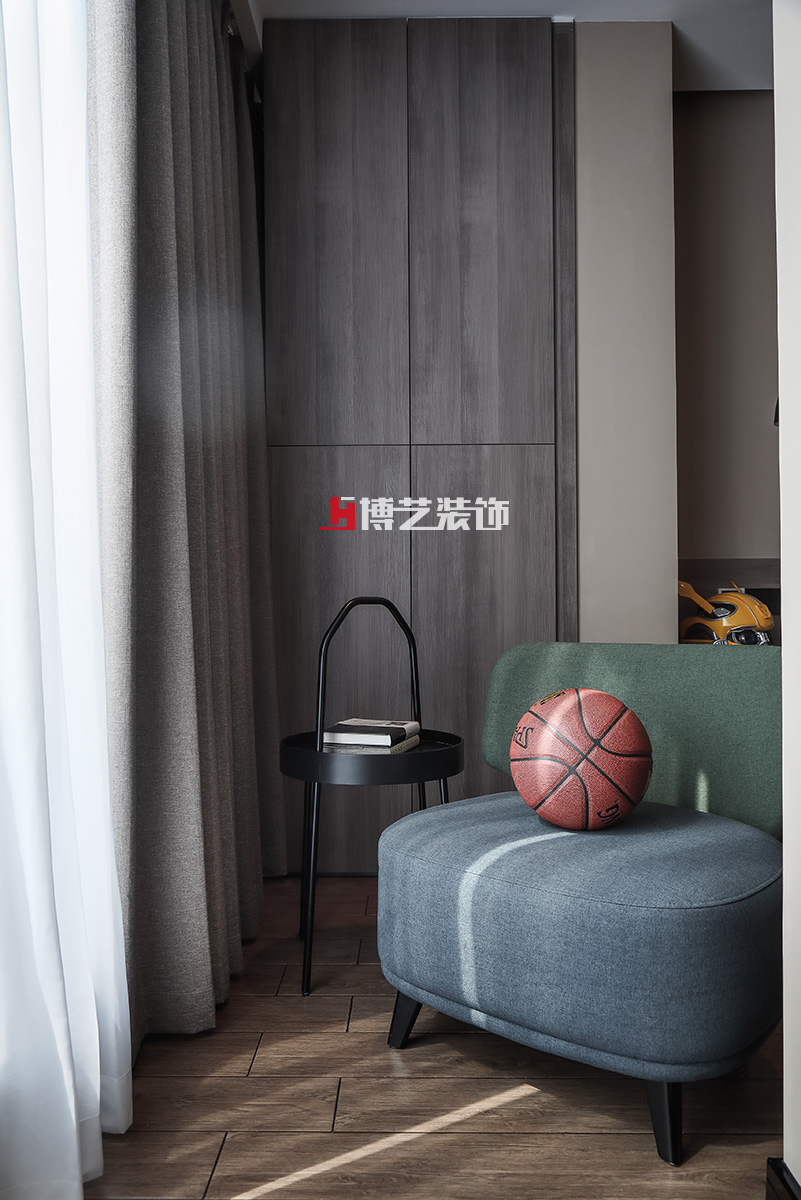 男孩子的房間則以咖啡色為主,從墻面到木飾面,不同的色調搭配出不同的層次,樸素又不失雅致。
