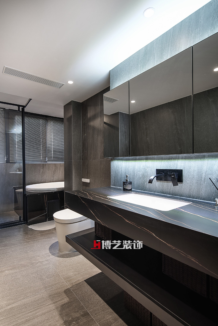 衛生間依舊用深色表現溫暖,泡上一個澡解除一天的疲乏,你的慵懶盡情釋放。