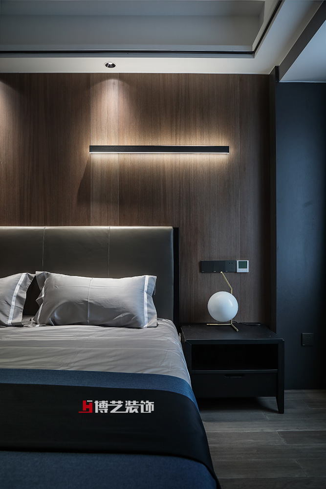 如果說房子是主人生活方式的投射,那么主臥更是主人品質(zhì)生活的畫像。這里是主人最為私密的放松空間,不妨將每一平米的舒適感都發(fā)揮到極致。高級灰勾勒著整個空間寧靜的基調(diào),木質(zhì)的背景又用奶茶般的溫柔進行包裹,讓整個主臥嚴謹冷酷又不乏舒適溫暖。