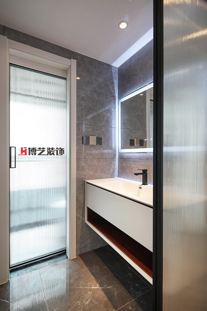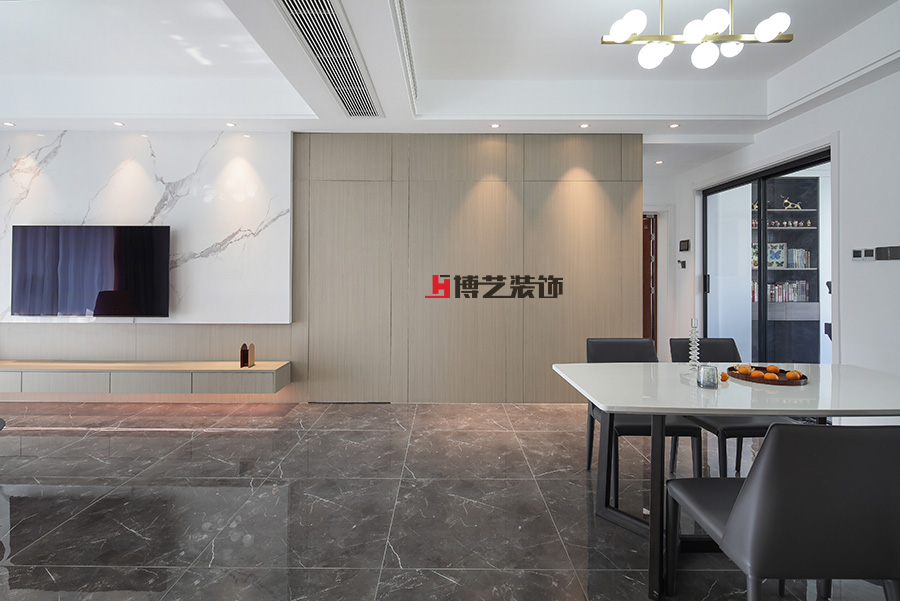 簡單的色塊與利落的線條,用木作的溫度包融石材的冷淡,以“簡、斂”之手法,把溫暖與寧靜留在家里。