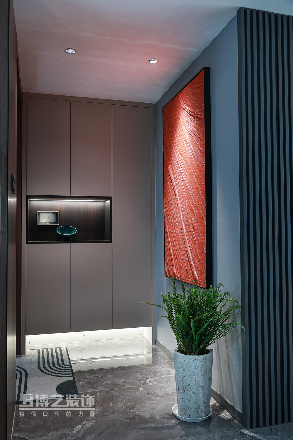 用熱烈的紅色帶來你回家的愉悅心情,通頂的鞋柜,超大的收納,完成這一平方的整潔。