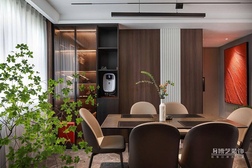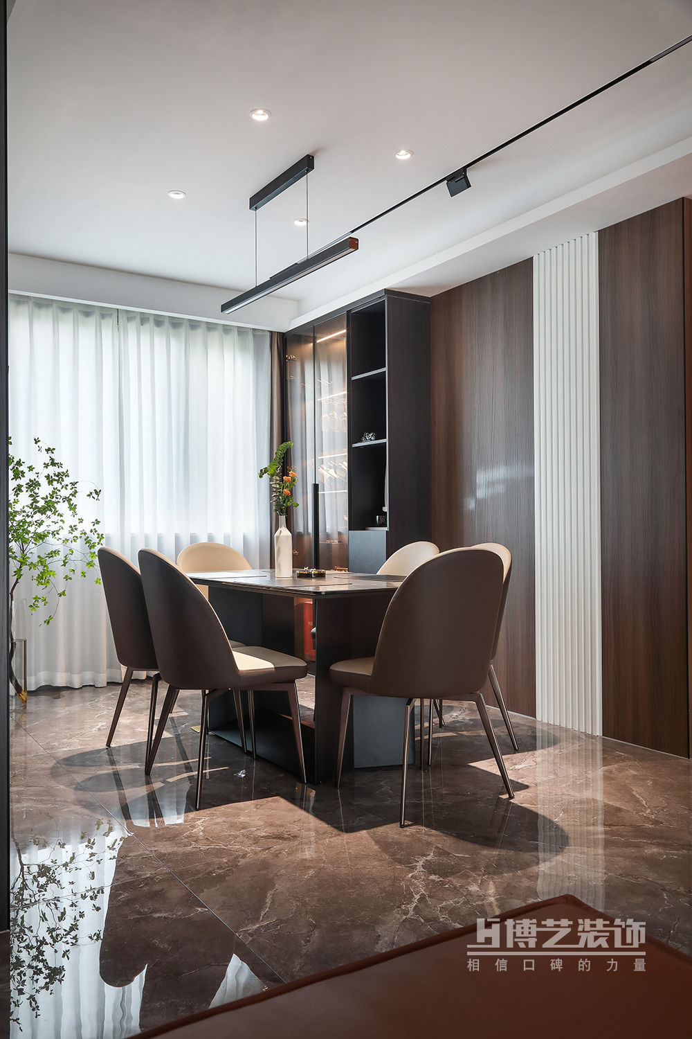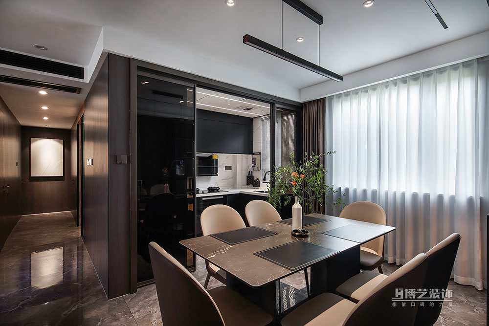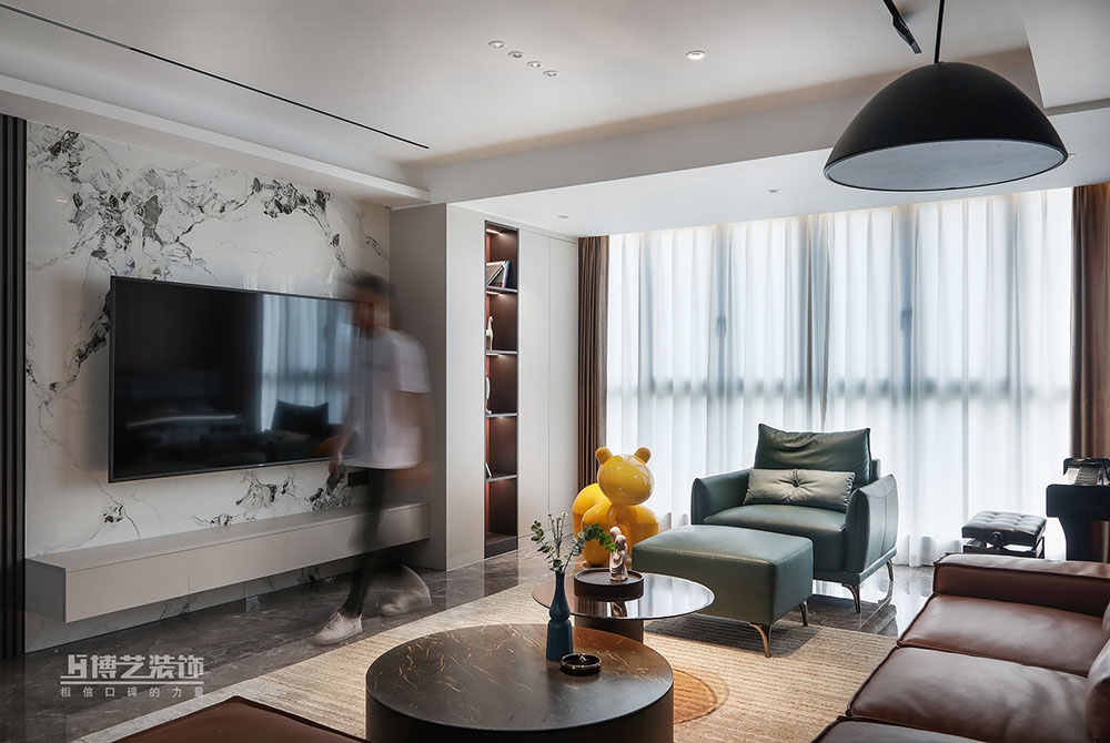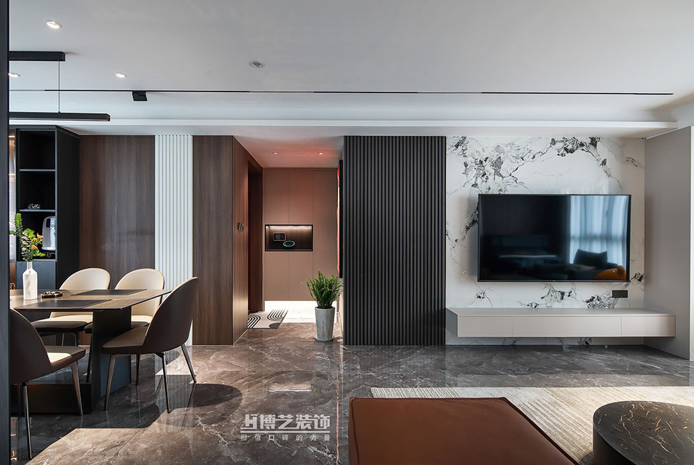 設計師圍繞“以簡為精”的設計,讓材質與色彩充分發揮,塑造出一個高貴的生活空間,
