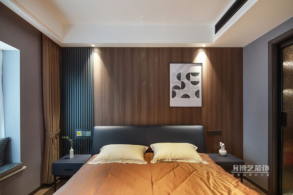 木飾面自然散發的歲月的沉香,平鋪的橙色的床品調節著空氣中的氣氛,攜著澄瑩的月光悄然帶你入夢。