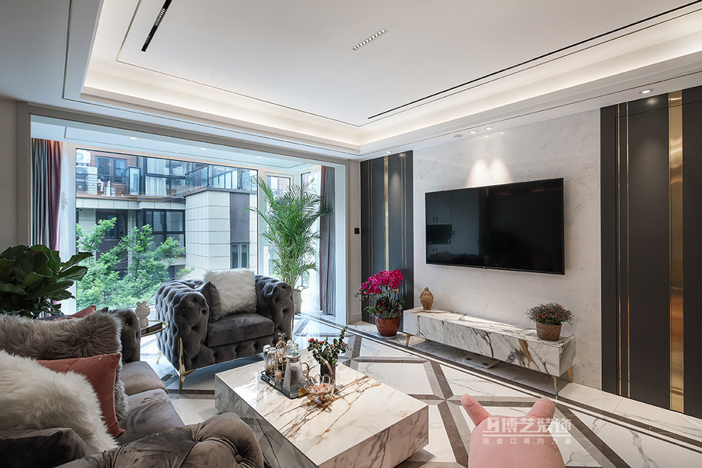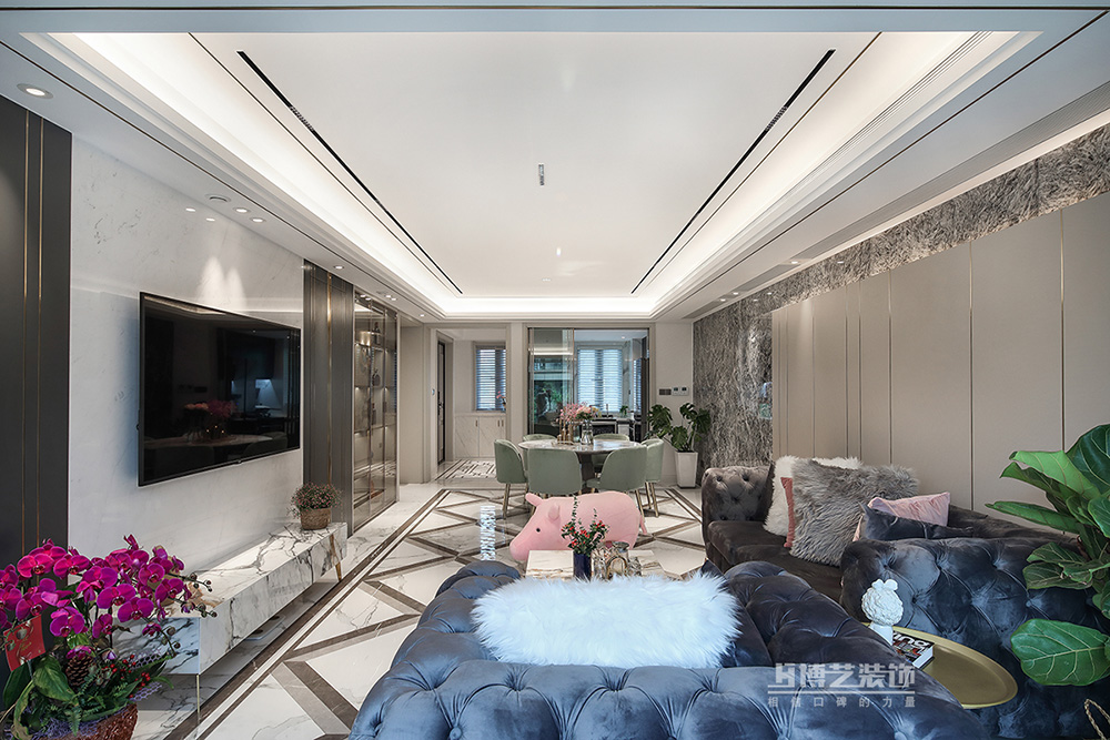 一如本案業主對新家的期許,“于極簡處見繁華”。設計師以流暢的線條,簡約而不失時尚的設計理念演繹現代都市輕奢風,以精致來凸顯品味。