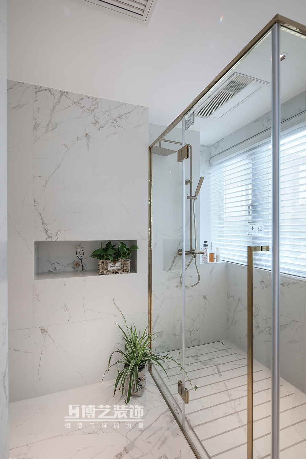 主衛與臥室保持一樣的基調,白色大理石與金屬清冽的鋪展,讓衛浴間極具高級感。