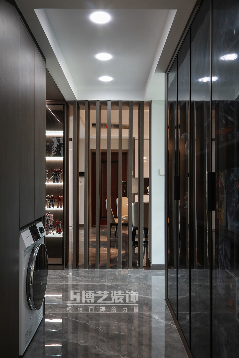 ·利用過道區(qū)域,外衛(wèi)做干濕分離,滿足日常使用,增加收納,讓手辦有了可以收納并展示的地方。