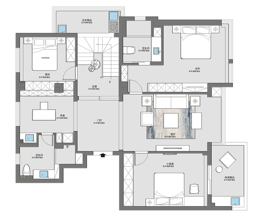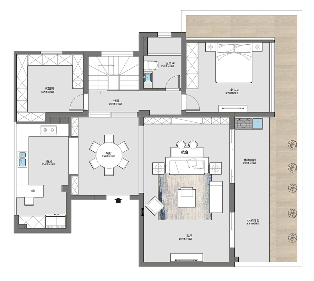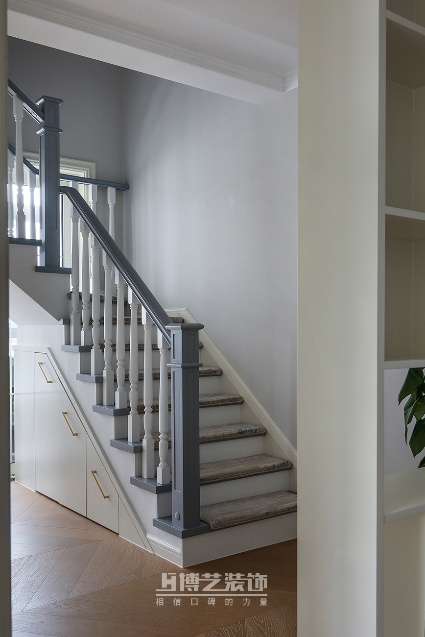本案是一套兩百多放的復式住宅,充盈的尺度空間,設計師以藍色貫穿始終,還原業主靜謐、安然的慢節奏生活理想,以通透、典雅的視覺體驗,給人清新、自然的居住氛圍。