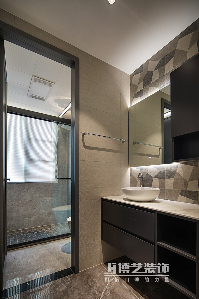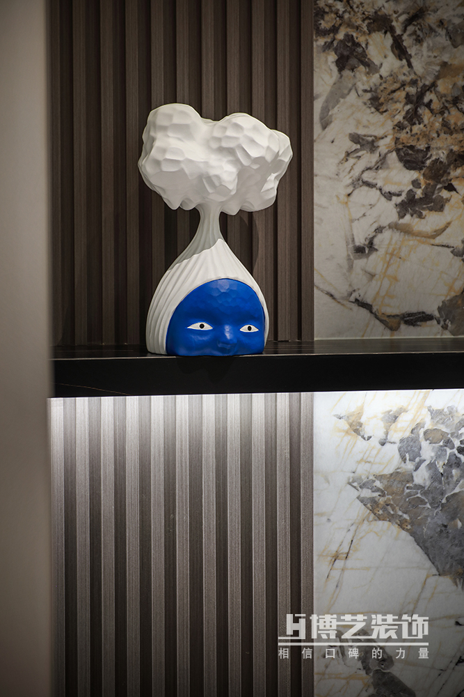 一進門,映入眼簾的是轉角設計和隔斷,平行的對角錯落形成視覺上的“進”與“退”,太妃糖色與白色大理石照應出幾分俏皮與溫柔,與黑色襯托出沉穩靜謐,疲憊的身體仿佛一下被拉回。