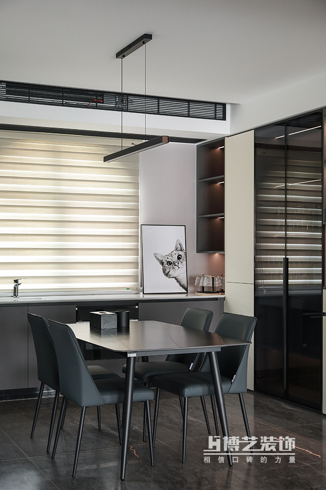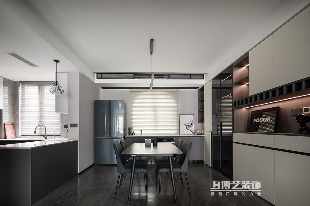 餐廚一體的設計優化了動線,讓烹飪更流暢同時也提高空間利用率。不受拘束的場域也讓家庭間的互動變得頻繁,就餐不是簡單的飽腹,更是情感的交流。