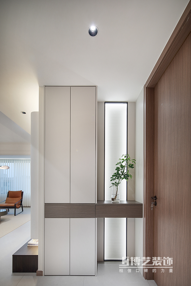 入戶做通頂鞋柜,滿足生活需求,利用穿插設(shè)計(jì)做延伸,搭配玻璃隔斷透光、美觀又實(shí)用。