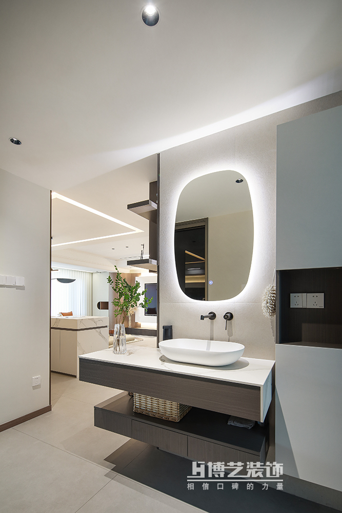 干濕分離的設(shè)計(jì),干區(qū)做“L”型設(shè)計(jì)與過道相容,增加空間的互通與美感,同時(shí)兼具實(shí)用性。